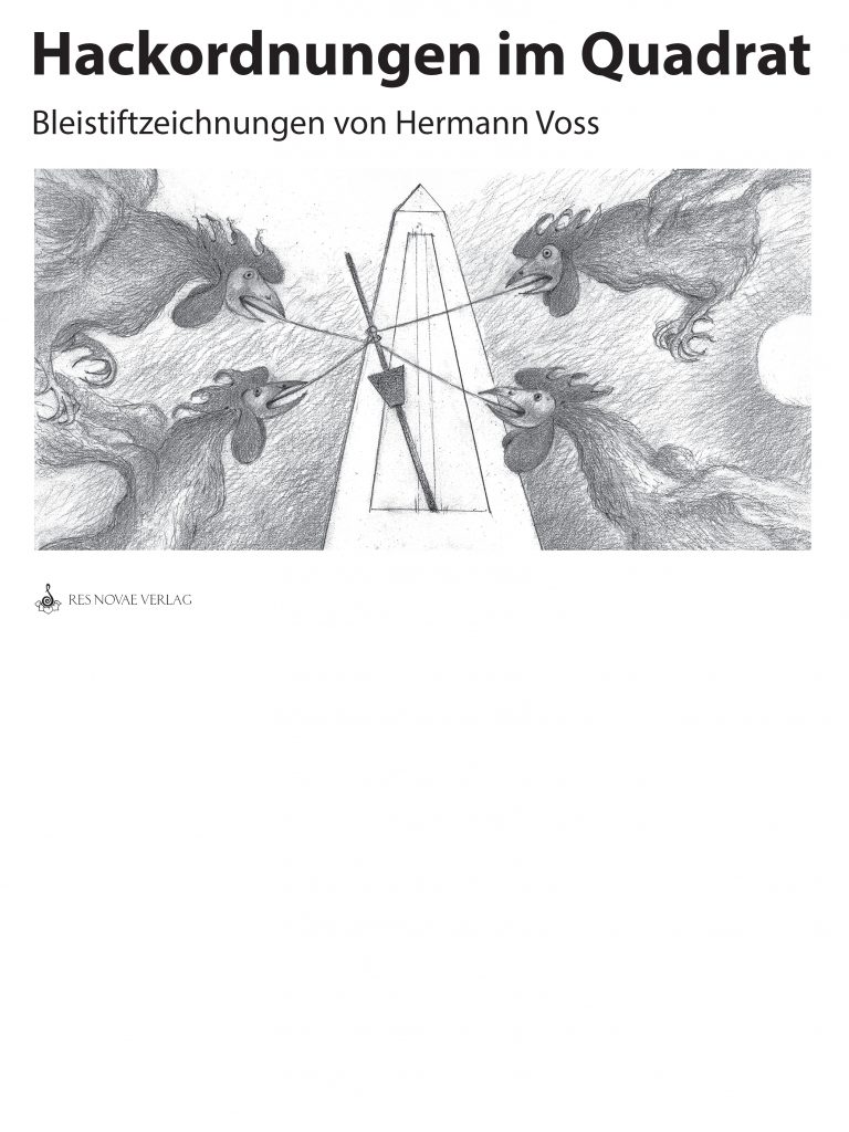 „Mit der Zeit stellte sich heraus, dass mich das Skizzieren während der Reisen immer öfter fesselte und die Freiräume zwischen Flügen, Zugfahrten, Proben und Konzerten kreativ ausfüllte. So kam es zu meinen Zeichnungen unter dem Titel ‚Hackordnungen im Quadrat‘. Fast alle Zeichnungen sind auf den zahlreichen Reisen des Melos Quartetts entstanden. Als die Konzerttätigkeit unseres Streichquartetts nach 40 Jahren ein Ende fand, wurden die Karikaturen überflüssig. Dafür nahm ich ab und zu hier in meinem Wohnort Waldenbuch den Stift zur Hand und beschäftigte mich mit meiner hiesigen Umgebung, wovon die Zeichnungen der letzten Jahre Auskunft geben können.„ – Hermann Voss –